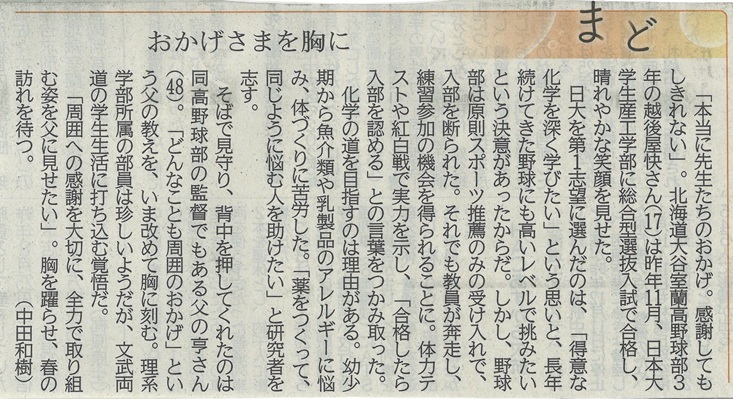 北海道新聞切り抜き 転載